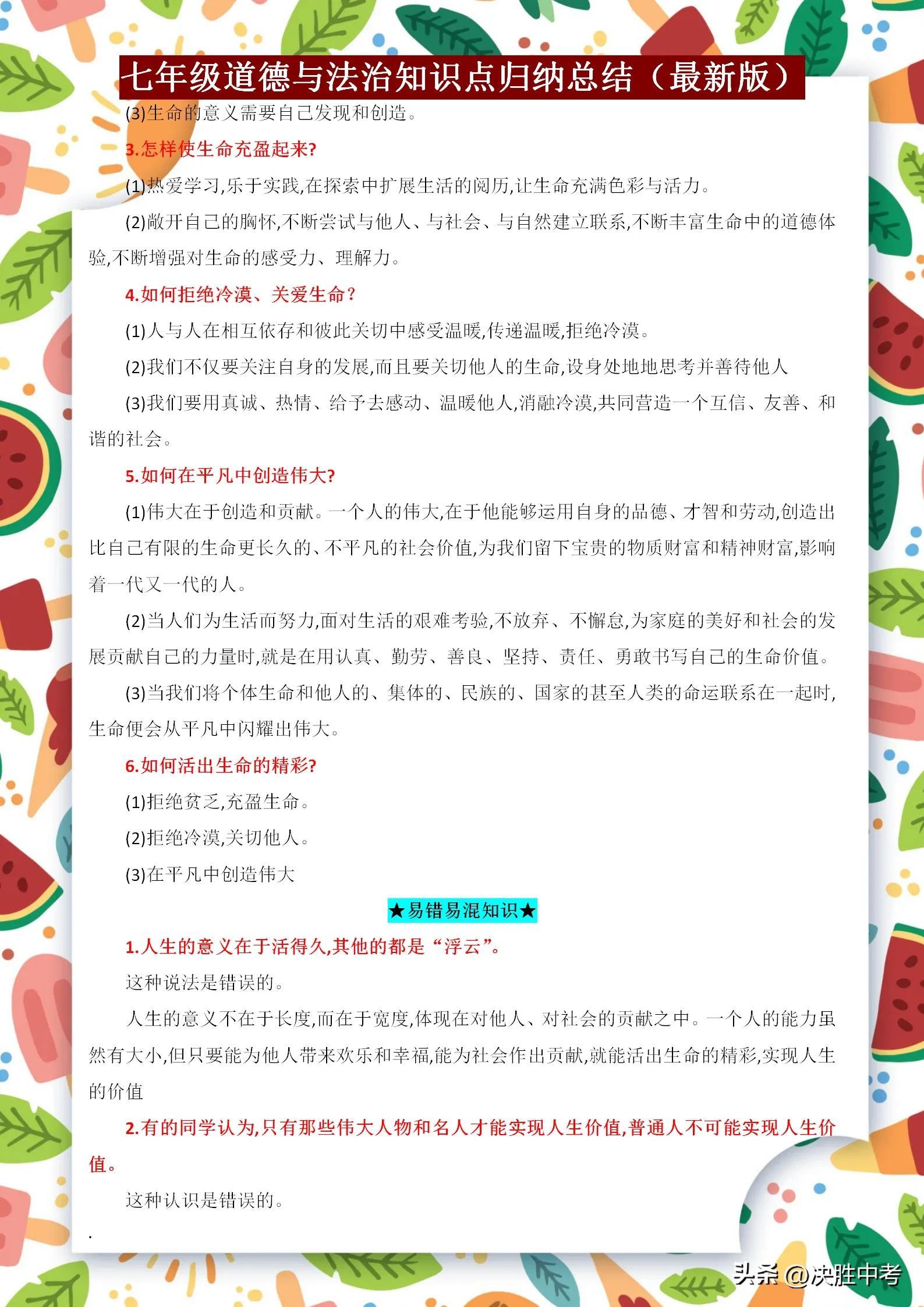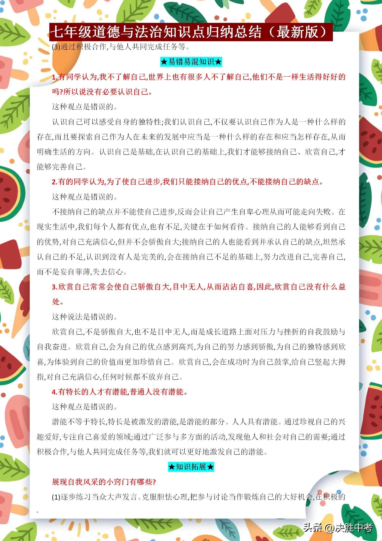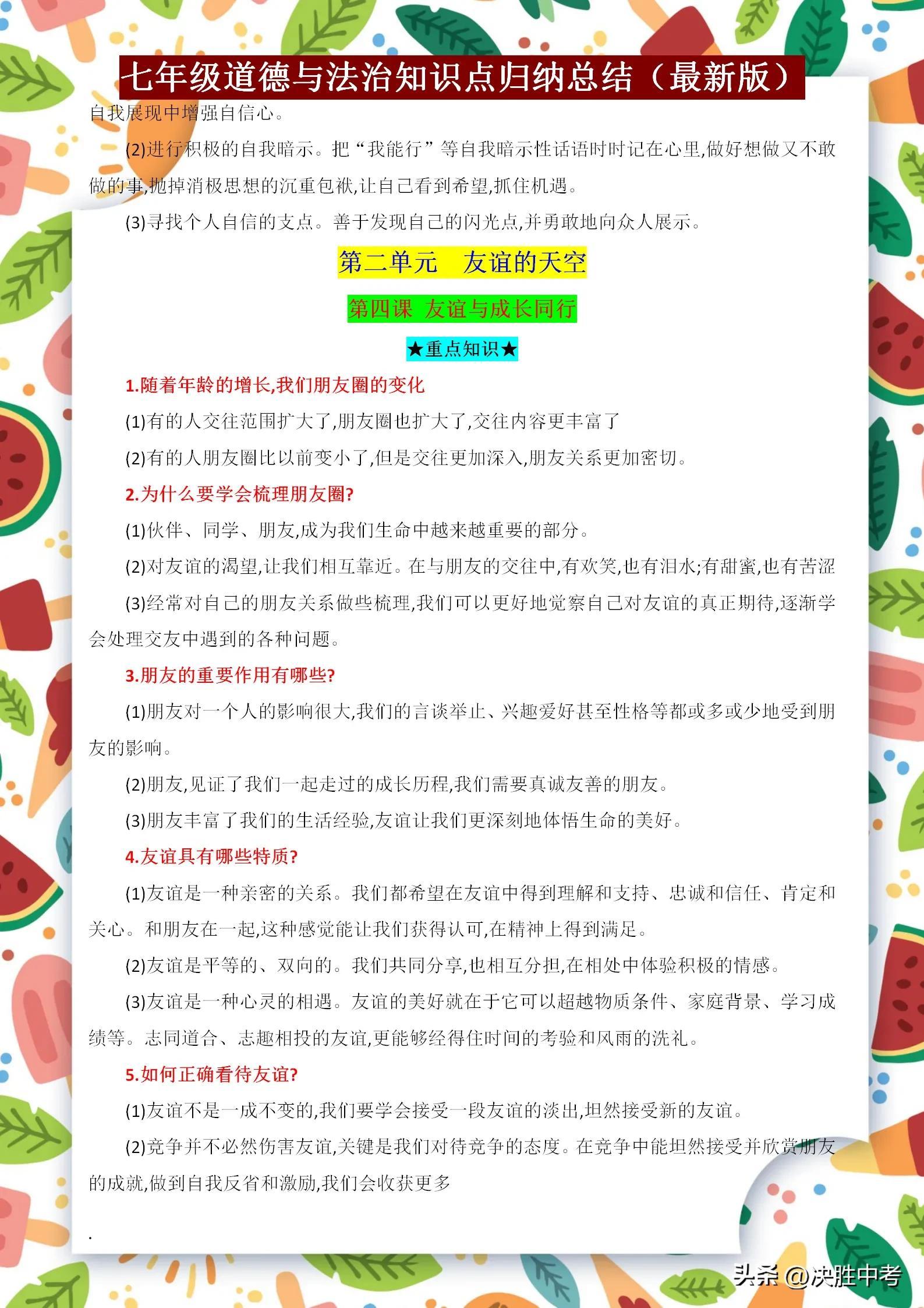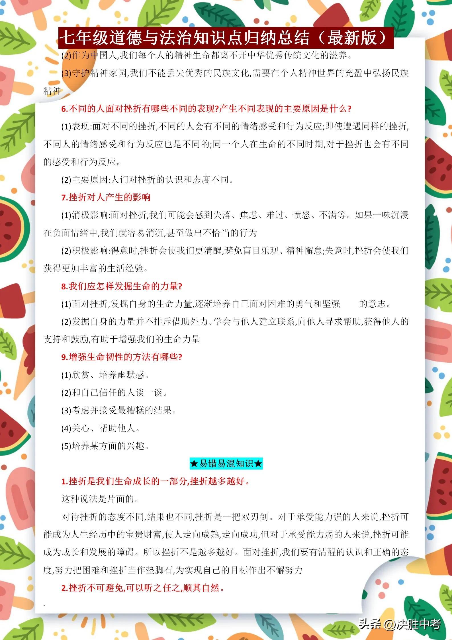 七年级道德与法治核心知识归纳总结,想做尖子生,这些都要掌握!