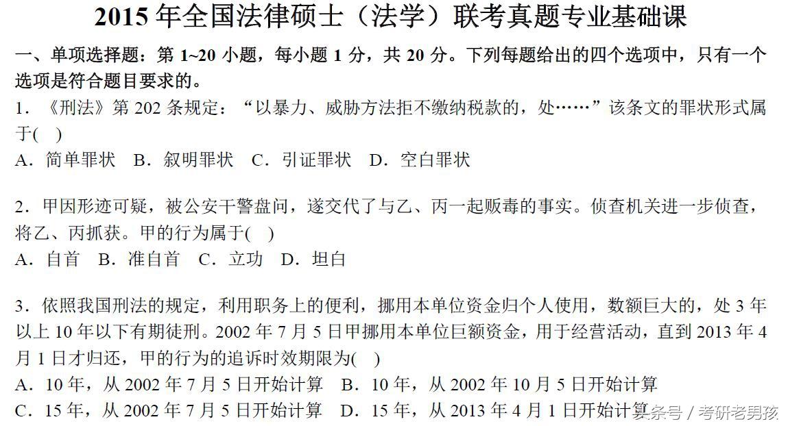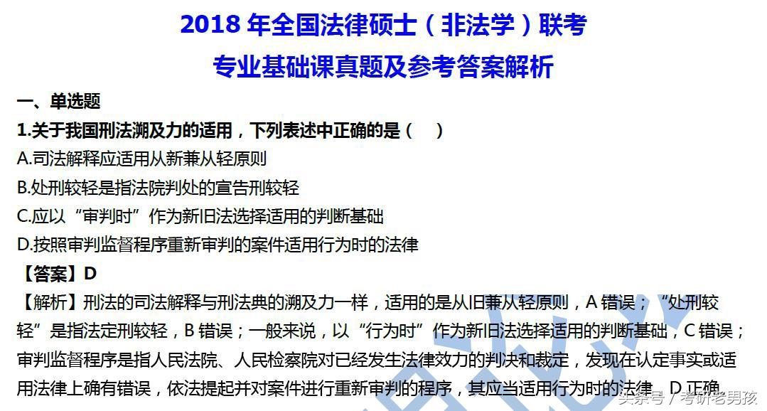 今天,“考研老男孩”为大家收集整理了2005-2018年法硕(法学+非法学)联考真题及解析。真题清晰、答案详尽,旨在为考生点拨解题思路、把握考试重点。