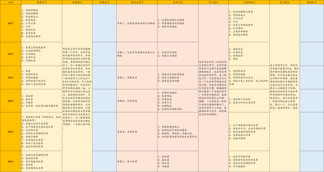 然后用图示的方式把诉讼法的知识点通过流程图进行梳理,把刑法,民法的知识点通过思维导图进行梳理,这样就会很清晰,很有逻辑性。