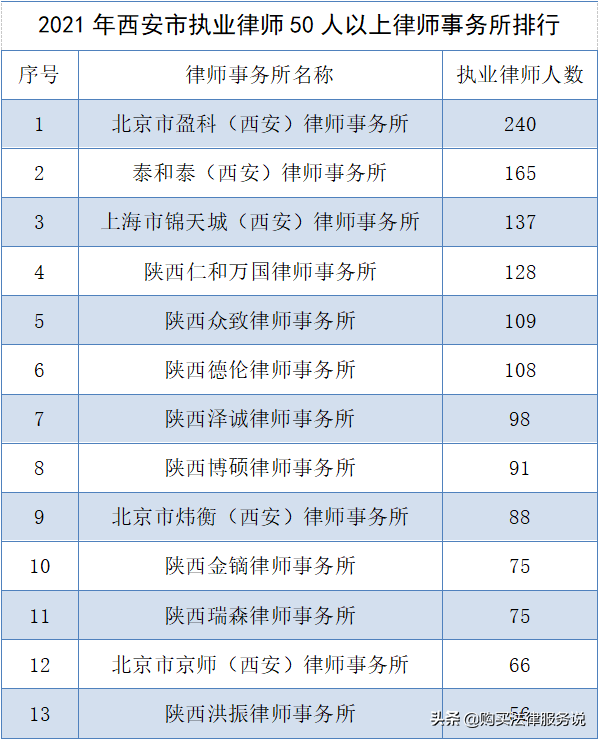 截止2021年底,西安市共有律师事务所309家,同比去年递增9.57%。