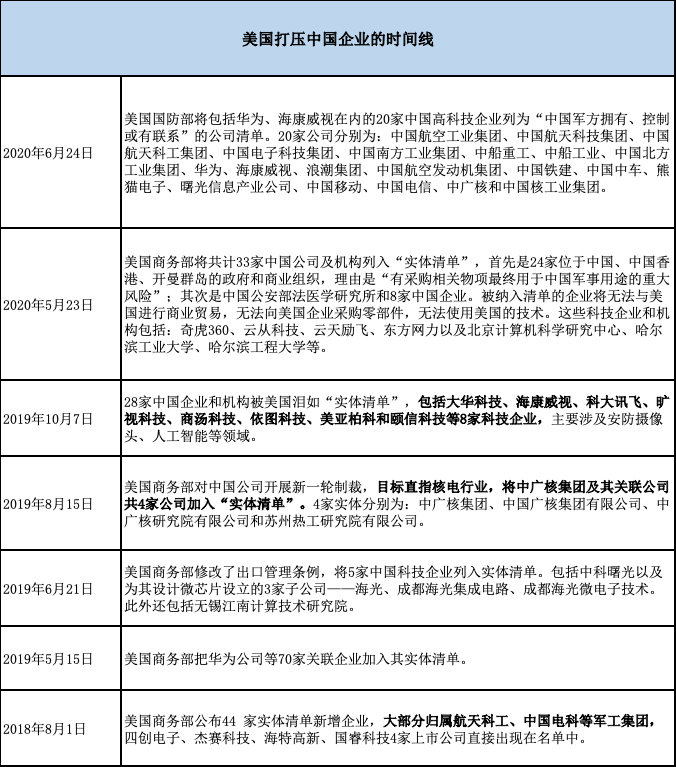 而早自2018年起,美国商务部就已开始陆续将中国企业列入“实体清单”。