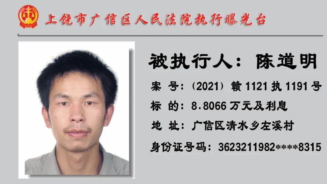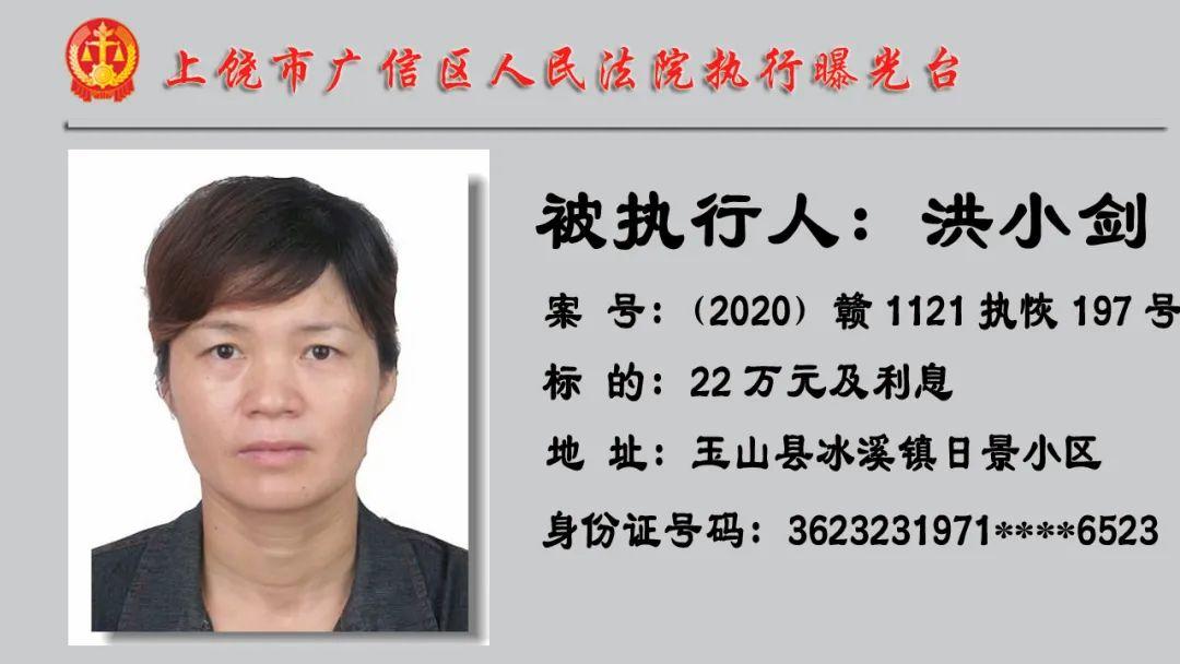 温馨提示:如各位市民有知晓上述人员下落或可供执行财产的,可向上饶市广信区人民法院执行局举报,并请大家谨慎与上述人员发生经济往来,举报电话: 0793-8446456