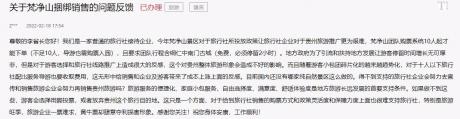 该网友的留言中还指出,景区给到旅行社购票方式的政策灵活度和保障力度不够。早在2019年,梵净山景区就曾被爆出,游客在OTA平台购买的门票到景区门口后却被告知门票无效的新闻。显然,梵净山景区在门票经营售卖上存在着诸多问题。