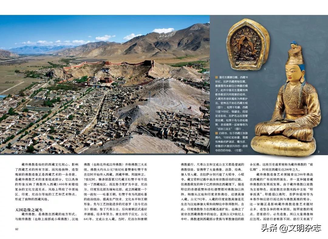 正是祖师像一张张亲切和蔼的面容、双身像飘散出的一股股神秘的气息、女性尊神像一个个动人多姿的体态、护法神像呼之欲出的恐怖表情⋯⋯构成了一个无比奇妙而又丰富多彩的藏传佛教的神像世界。这世界是西藏一代代能工巧匠以智善之心灵、巧妙之手法汲取多方工艺技巧的呕心沥血之作,是不同文化相互碰撞、相互融合的见证。今天,当我们领略到这一尊尊神像之美,并深深领悟其中的内涵,仍能感受到心灵的震颤,得到心灵之洗涤,如入纯洁明净的佛国之境。