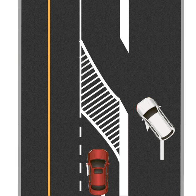 如图所示,导流线是用来提醒主路车辆避让前方入口车辆的,如果有车辆直行轧导流带,与正在转向进入主路的辅路车辆发生事故,那么轧导流带的车辆要负相应的事故责任。