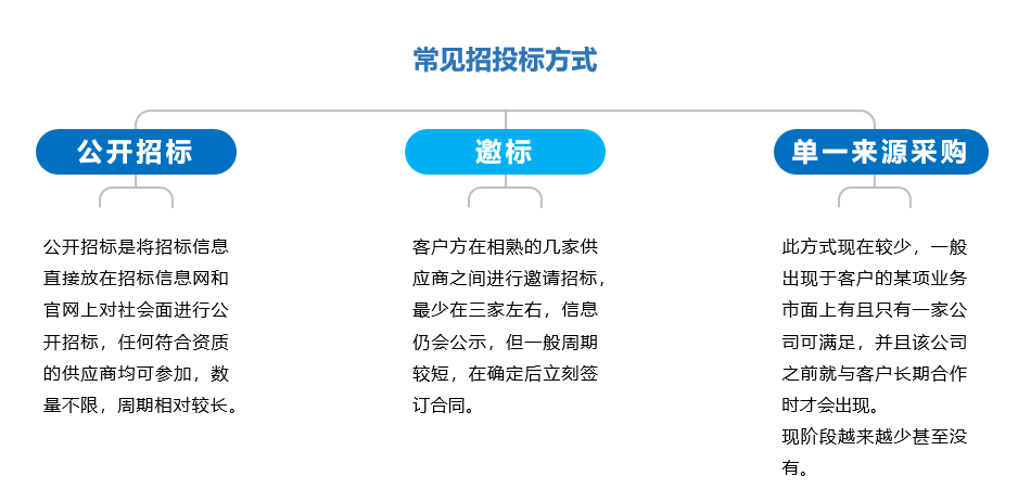 此方式现在较少,一般出现于客户的某项业务市面上有且只有一家公司可满足,并且该公司之前就与客户长期合作时才会出现。但为规避风险,现阶段越来越少甚至没有,在此提出仅供了解。