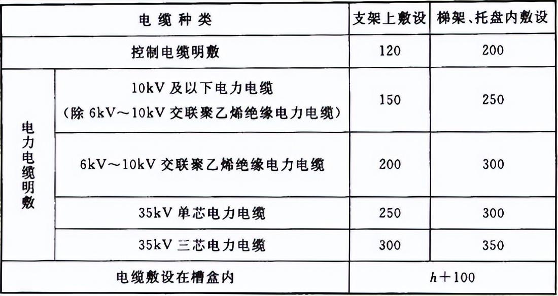 表13.2.1-1 电缆支架层间最小距离(mm)