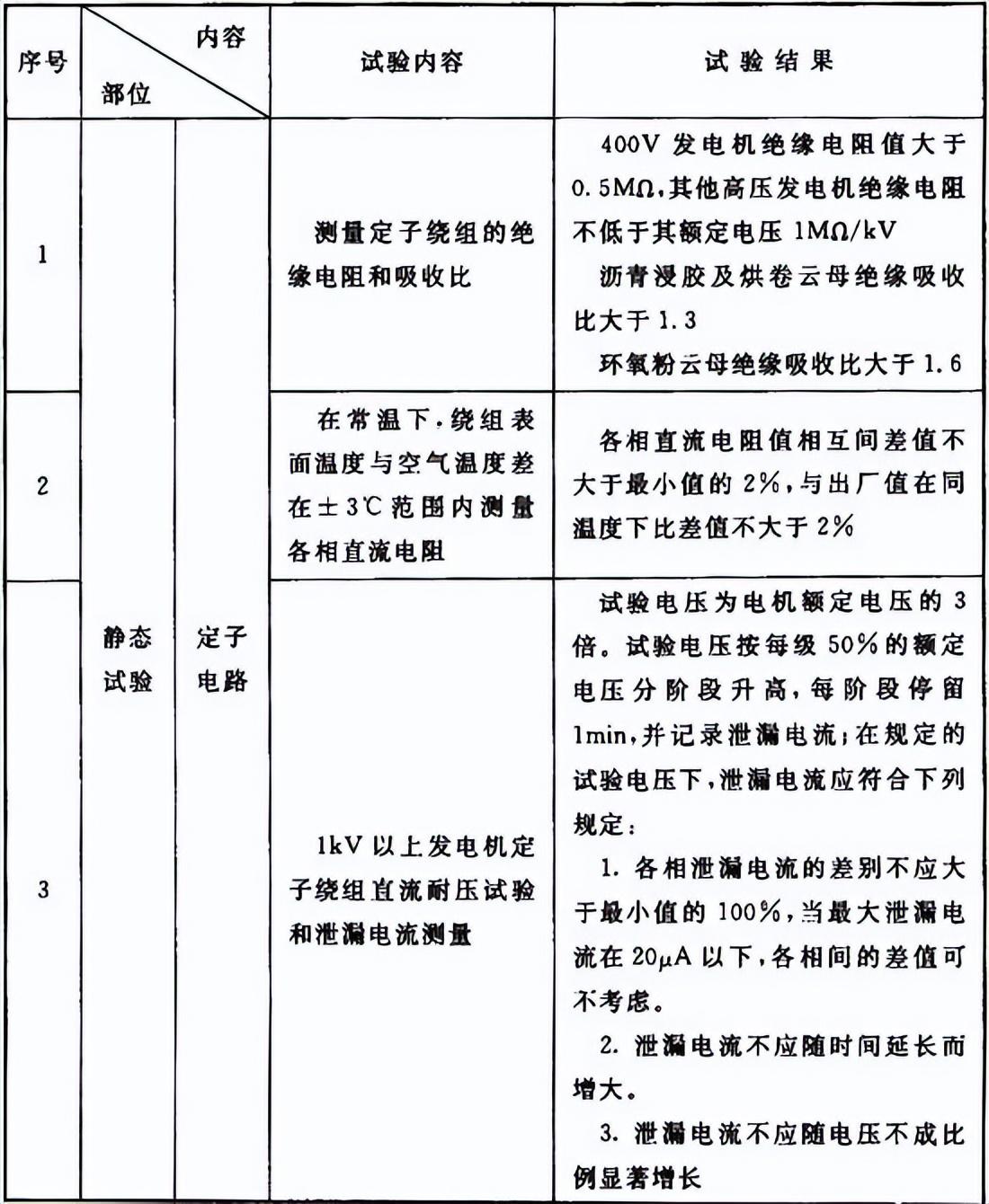 6.1.1 本条与本规范修订前一致,是原规范的强制性条文。建筑电气设备采用何种供电系统,是由设计决定的,但外露可导电部分是必须与保护导体可靠连接,可靠连接是指与保护导体于线直接连接且应采用锁紧装置紧固,以确保使用安全。使用安全电压(36V及以下)或建筑智能化工程的相关类似用电设备时,其可接近裸露导体是否需与保护导体连接,应由相关设计文件加以说明。连接导体的截面积按本规范第3.1.7条执行,由设计根据电气设备发生接地故障时能满足自动切断设备电源的条件来确定。6.1.3 建筑电气工程中电动机的容量一般不大,但目前随着建筑面积和体量的增大,冷水机组已逐步采用10kV高压电机。高压机组为成套设备,且启动控制也不甚复杂,所以交接试验内容也不多,主要是绝缘电阻检测、大电机的直流电阻检测、绕组直流耐压试验和泄漏电流测量。需要注意的是,高压电机的绝缘电阻测试应选用2500V兆欧表。