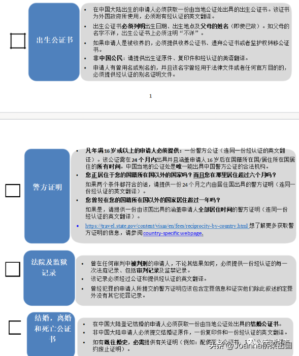 不同国家地区,申请警方证明的要求不一样,大家可以前往美国国务院官网,找到对应的国家地区,仔细查看相应的要求。