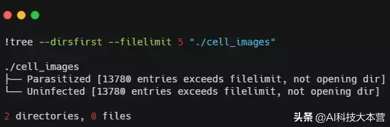 从上图所示的目录结构中可以看到,我们的文件里包含两个文件夹,分别包含受感染的和健康的细胞图像。利用以下代码,我们可以进一步了解图像的总数是多少。