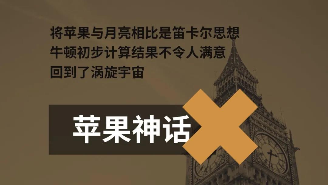 爱因斯坦评价说在牛顿以前和以后,“都还没有人能像他那样决定着西方的思想、研究和实践的方向。”而普通人对于牛顿的了解则大都来源于那个“苹果落地”的科学轶事。虽然“苹果神话”存在,但是,万有引力定律绝对不是牛顿坐在苹果树下被苹果砸中脑袋之后,即兴想出来的,著名科学史家、清华大学科学史系主任吴国盛教授日前登坛讲授《瘟疫之年:重新认识牛顿》,他表示,伟大的思想从来都有历史背景,而万有引力定律的形成,卡笛尔功不可没:“可以说牛顿就是笛卡尔直接的继承者。牛顿有一句名言‘如果我看得比别人更远一点,那是因为我站在巨人的肩膀上’,这个‘巨人’指的就是笛卡尔。没有笛卡尔的铺垫,牛顿到达不了后来的高度。”
