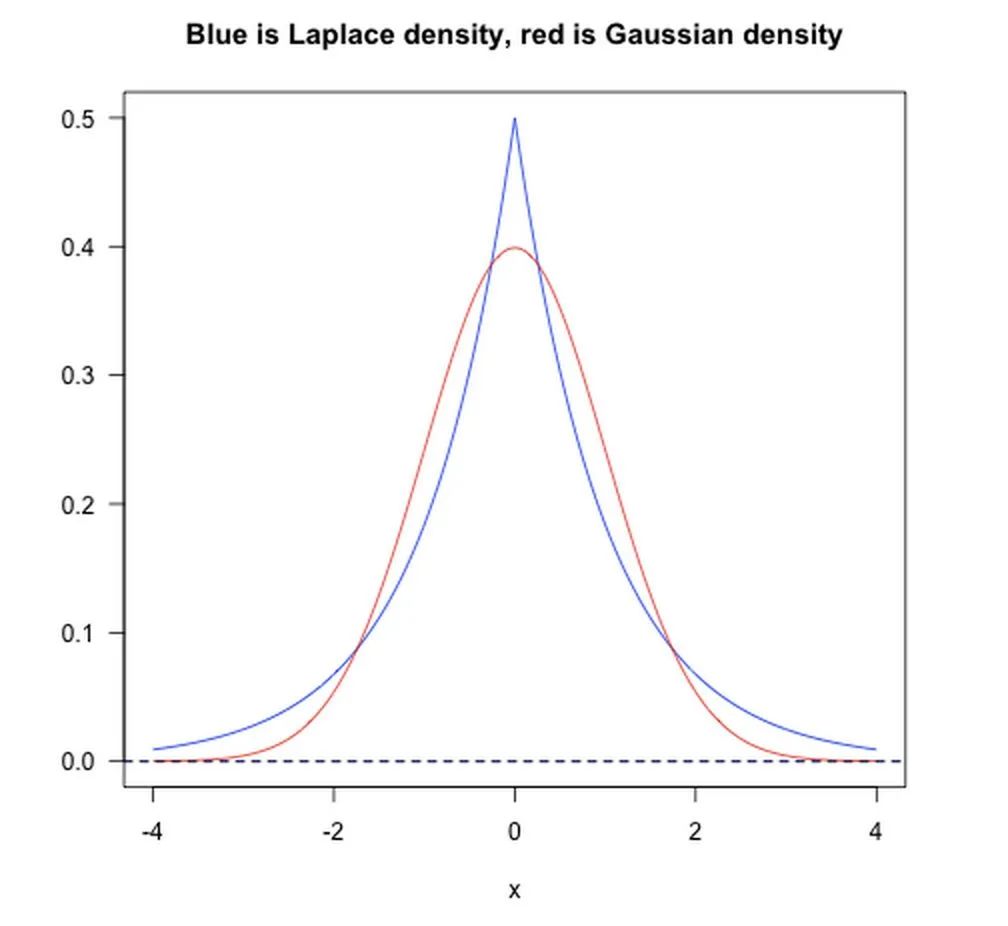 L1范数相当于加入了一个Laplacean先验;L2范数相当于加入了一个Gaussian先验。如下图所示: