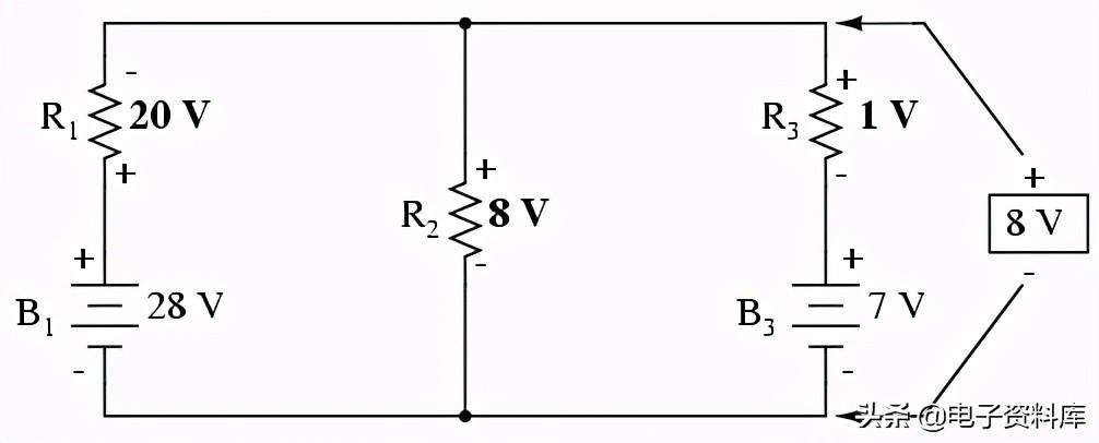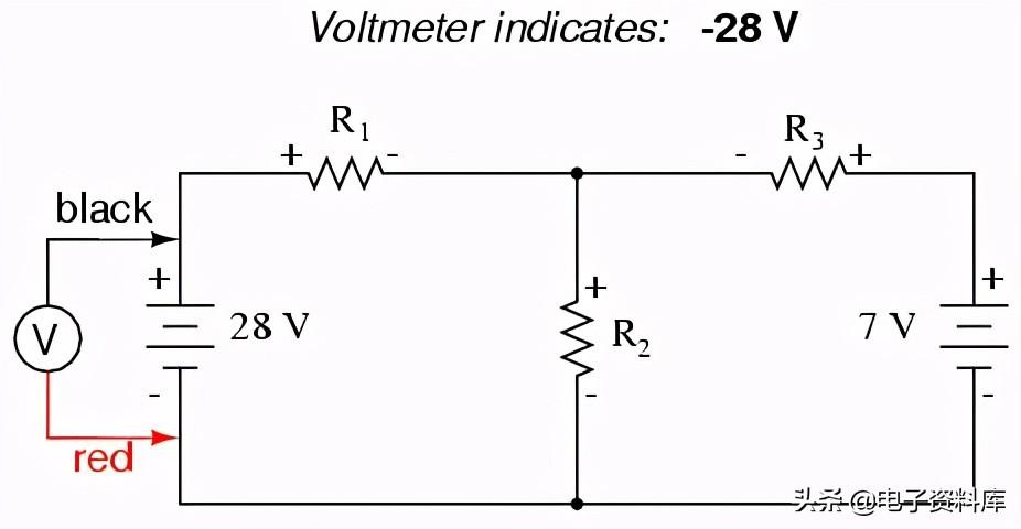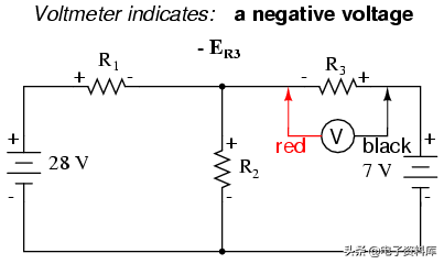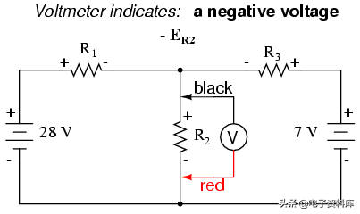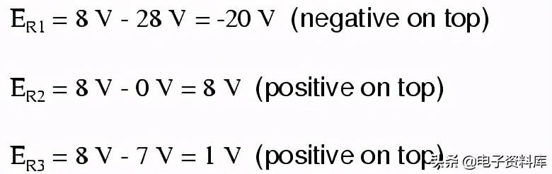 电压和电流叠加这些值时,我们必须非常谨慎地考虑极性(压降)和方向(电子流),值必须添加用代数方法。