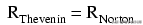 考虑到戴维南和诺顿等效电路都是为了表现一样的原始网络提供电压和电流的负载电阻(从负载连接点)的角度来看,这两种等效电路,源自相同的原始网络应该行为是一样的。