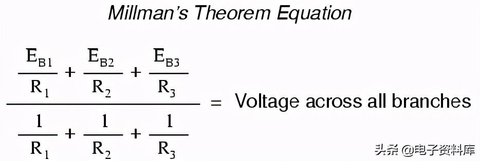 米尔曼方程的无非是一个Thevenin-to-Norton转换匹配一起并联电阻公式找到所有分支电路的总电压。 希望现在的一些神秘消失了!