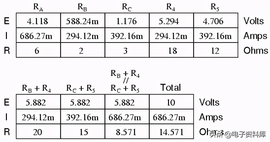 尽管它可能不明显的在这一点上,问题的核心是多个未知数量的存在。 至少在电路串联/并联组合,有一种方法找到总阻力和总电压、总离开当前作为一个未知值计算(然后,目前被用来满足还原过程中未知变量,直到整个电路可以分析)。 这些问题,超过一个参数(变量)是未知的电路简化在最基本的层面上。