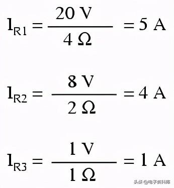 电流代数相加,可以叠加,用电阻电压下降,或简单地计算最终的电压降和各自的抗性(I = E / R)。 无论如何,答案将是相同的。 在这里,我将展示叠加方法应用于电流: