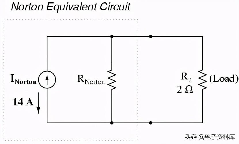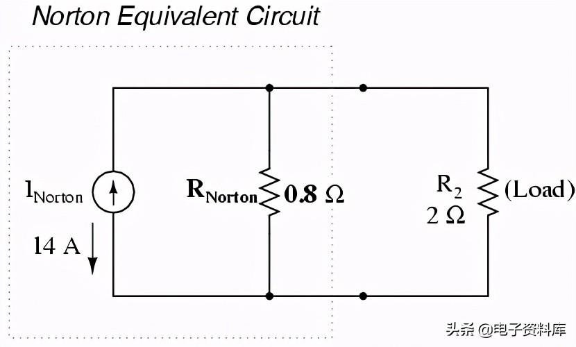 如果我们经常原始负载电阻2Ω,我们可以分析诺顿电路作为一个简单的平行排列: