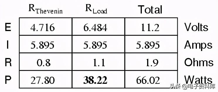 功耗增加戴维南阻力和总电路,但它减少负载电阻。 同样,如果我们增加负载电阻(例如,1.1Ω代替0.8Ω),功耗也会低于在0.8Ω到底: