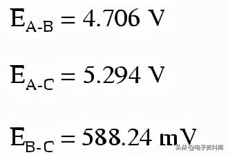 如果我们执行计算正确,点之间的电压,B和C是相同的在转换电路原来的电路,我们可以将这些值回原来的桥接配置。