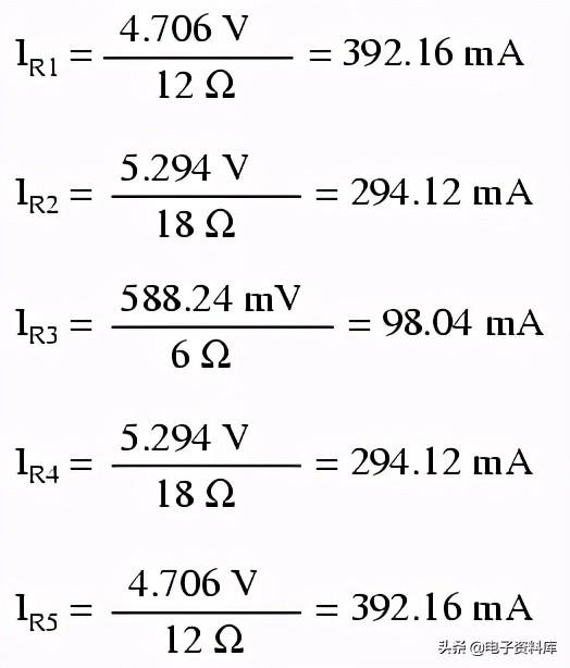 0.136092到达我的负面价值1告诉我们网目前的假设的方向是不正确的。 因此,实际的当前值在每个电阻器是这样: