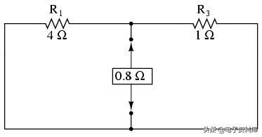 删除这两个电池,总电阻等于R测量在这个位置1和R3并行:0.8Ω。 这是我们的“戴维南抵抗”(RThevenin对等效电路):