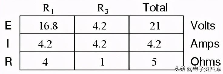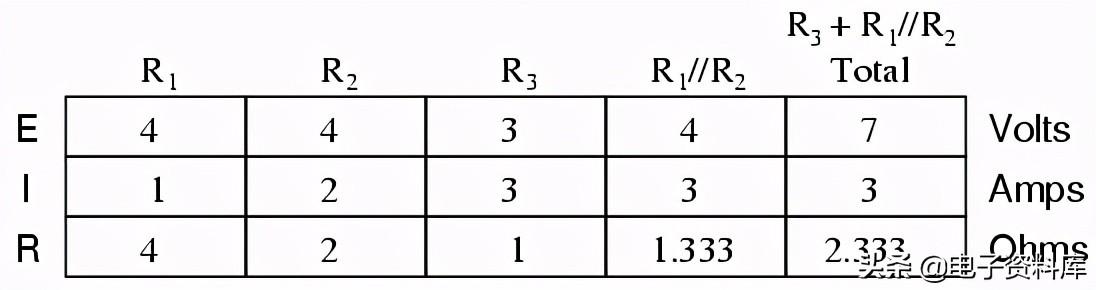 分析上面的电路中,人会首先找到相当于R2和R3同时,然后添加R1串联到达总阻力。 然后,电池的电压1与电路总电阻,电流可以计算通过使用欧姆定律(I = E / R),那么,目前的数字电路中用于计算电压降。 总之,一个相当简单的过程。