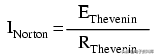 相反,戴维南和诺顿等效电路都应该产生相同数量的电流负载终端短路。 诺顿等效,短路电流等于诺顿源电流,也就是14安培。 戴维南等效,所有11.2伏特将被应用在0.8Ω戴维南阻力,产生同样的电流短,14个安培(I = E / R)。 因此,我们可以说,诺顿电流等于等效发电机电压除以戴维南阻力: