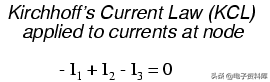 基尔霍夫电流定律(氯化钾)告诉我们,电流的代数和进入和退出一个节点必须等于零,所以我们可以联系这三个电流(I1,我2,我3)在一个方程。 为了约定,我会表示任何电流进入节点的积极迹象,任何电流退出节点作为负面迹象: