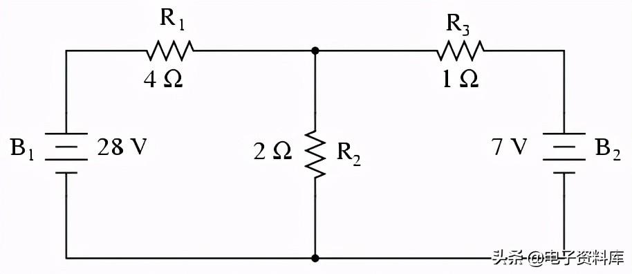 “戴维南等效电路”是B的电当量1, R1, R3, B2从这两个地方我们负载电阻器(R2)连接。
