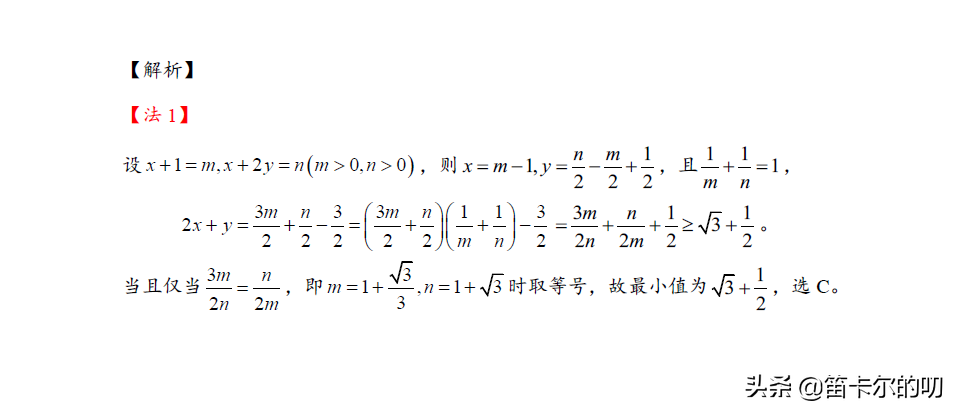 遇见复杂的结构,“换元”是最基本的操作——眼花缭乱瞬间变得一目了然。事实上,绝大多数人都猜到了“1的代换”,只是对如何代换一筹莫展。