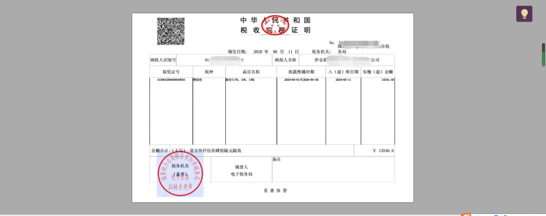 下载之后就可以查看电子完税证明,以【电子完税证明(表格式)】为例。