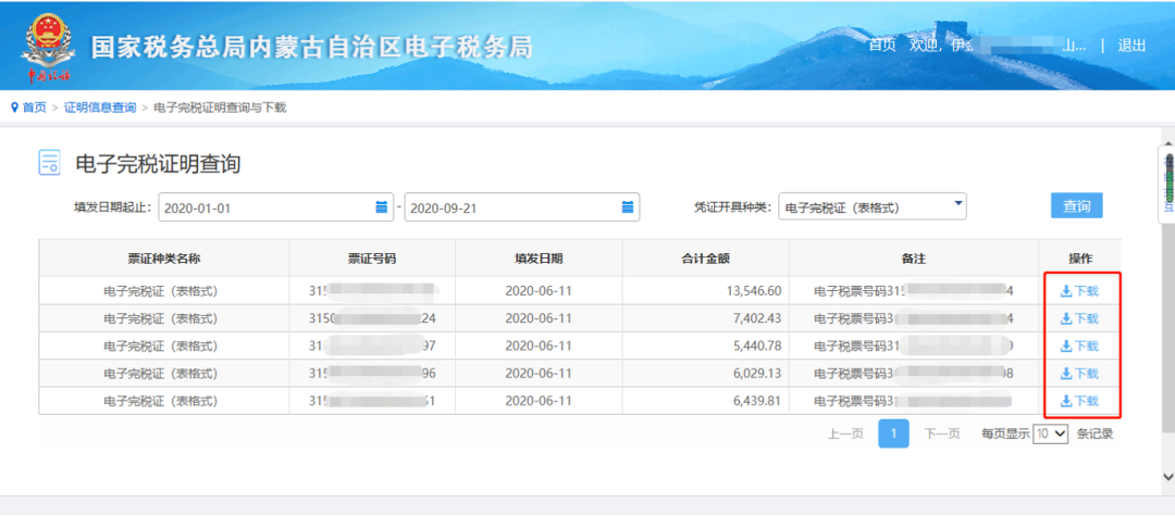 点击【下载】即可下载生成PDF格式的电子完税证。