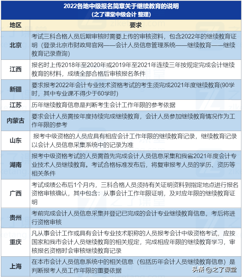 部分省市在报名简章中还有规定:需要考生提供继续教育证明,或将继续教育作为考生会计工作年限的判定依据,在资格审核时需要审核。