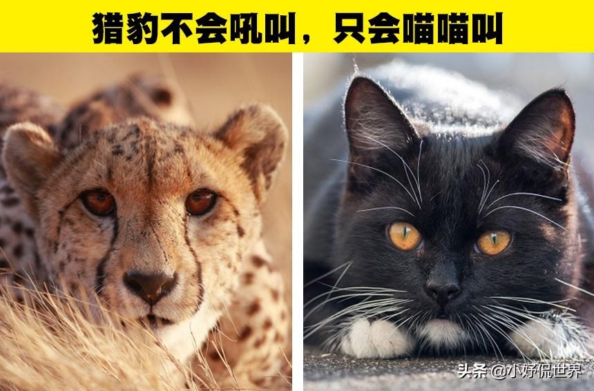 可爱的家猫看起来一点也不凶猛,它们只会喵喵叫。在很多人的印象中,野外的猫科动物体型更大,更加凶猛,并且会发出吼叫声。但这并不是绝对的事实,野外有不少猫科动物也只会发出喵喵叫。其中最让人意外的或许就要属猎豹,这种强大的掠食者并不会吼叫,只会喵喵叫。