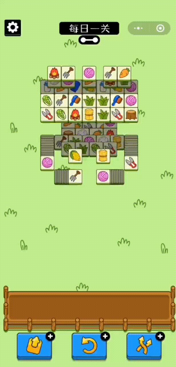 可以看见,在游戏页面下方共有7个槽位,玩家需要通过点击将目标砖块放入卡槽,累计三张相同砖块即可完成消除。但卡槽仅有七个位置,占满所有位置则算失败。