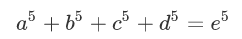 欧拉从费马大定理出发也提出了一个猜想,他认为下面这样的方程不存在整数解: