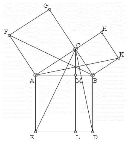 [(x,y,z) | x<-[1..100], y<-[x..100], z<-[y..100], x^2+y^2==z^2 ]中国人研究数学是实用主义,能把"勾三股四弦五"用于生产实践就行,而国外学派讲究严谨,构建好几条公理,然后通过公理去证明一条一条的定理。勾股定理看似简单,但证明起来也需要一点技巧,我上学时用过的教科书上看到的是经典的欧几里得证明法。说实话,当时看明白了这个复杂的证明思路,但现在无论如何是推不出来了。