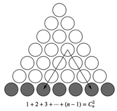 说到无字证明,再扯远一些,当年看过这个关于排列组合的无字证明,这个图中除了公式之外,绝对是一个字也没有,非常精巧,不过理解起来也并不容易。