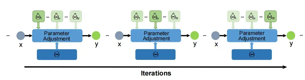 其中是一个多重伯努利分布,因为每一层的卷积过程都是随机的,每一层随机从N种卷积方式里选择一种,对于L层,就有种不同的组合方式。