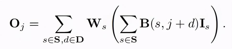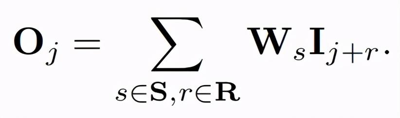 对于一个3x3的方形卷积,可以用下面的公式表示(对感受野内的特征进行加权求和):