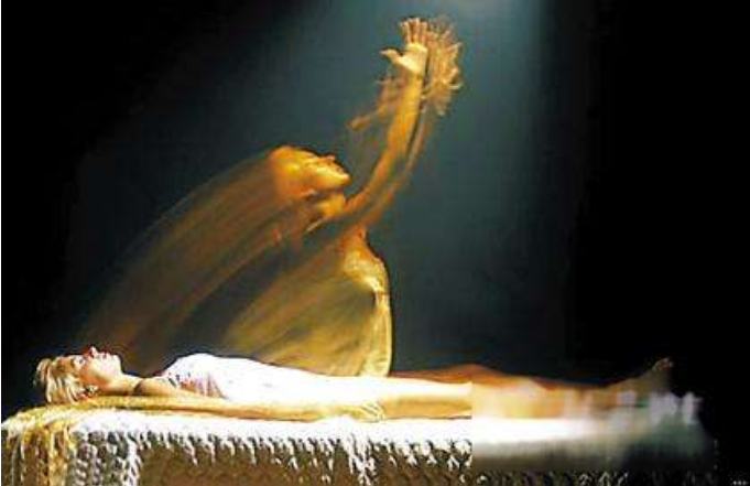 面对这种情景,加林顿博士不禁惊奇呼叫一声:“啊!那影子从她的身体离开而去。”那一具微微发亮的影子,在空中像在游泳一般地飘向病房的一个角落,终于消失了。加林顿博士这时冲向病床,发现那位少女已然死去。