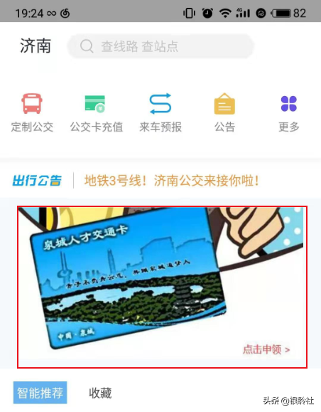 打开369出行APP,在首页点击提示申请“泉城人才交通卡”的图片