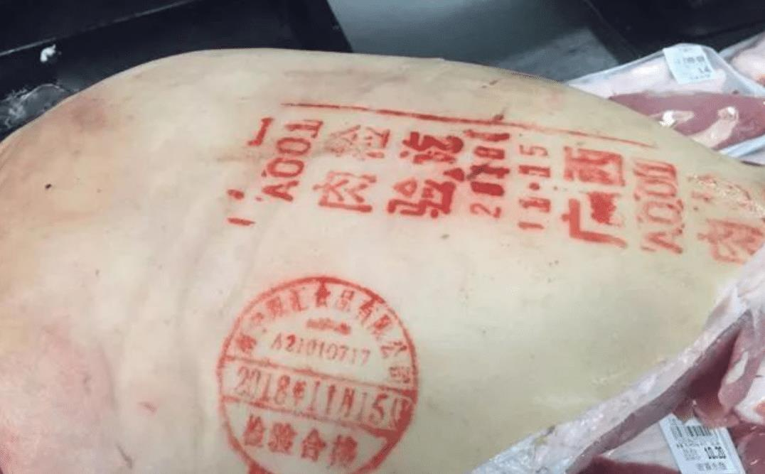 那么我们看到的不同颜色的印章有什么门道吗?实际上,红色的章就是猪肉品质的检验章,而蓝色的章则是动物检疫部门盖的章,确保动物并没有什么传染病之类的。