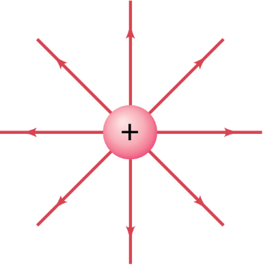 此外,跟梯度一样,散度这个名字也是非常形象的。很多人会跟你说散度表示的是“散开的程度”,这种说法很容易让初学者误解或者迷惑,比如一个正电荷产生的产生的如下的电场线,它看起来是散开的,所以很多就会认为这里所有的点的散度都是不为零的,都是正的。
