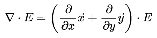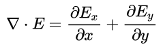 这就是电场E的散度的最终表达式,它的意思很明显:我们求电场E的散度就是把矢量函数E分解成x和y方向上的两个函数,然后分别对它们求偏导,最后再把结果加起来就行了。