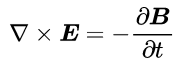 左边除了一个面积ΔS,那右边也得除以一个面积,右边本来是磁感应强度的变化率(∂B/∂t)和面积的乘积,现在除以一个面积,那么剩下的就是磁感应强度的变化率∂B/∂t了。那么,麦克斯韦方程组的第三个方程——法拉第定律的微分形式自然就是这样: