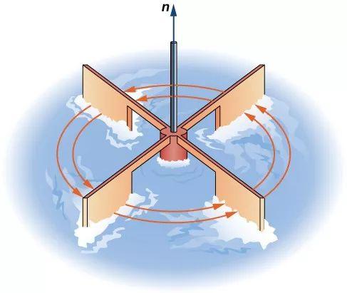 跟散度一样,我们不能仅凭一个感生电场是不是旋转状的来判断这点旋度是否为0,我们也需要借助一个小道具:小风车。我们把一个小风车放在某一点上,如果这个风车能转起来,就说明这点的旋度不为0。你只要把风车放在感生电场中心以外的地方,就会发现如果外层的电场线让小风车顺时针转,内层的电场线就会让小风车逆时针转,这两股力刚好抵消了。最终风车不会转,所以旋度为0。