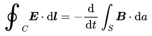 公式的左边是电场的环流,右边是磁通量的变化率,它告诉我们变化的磁通量会在曲面边界感生出电场。我在积分篇里说过,磁通量(B·a)的变化可以有两种方式:磁场(B)的变化和通过曲面面积(S)的变化,我们上面这种方式是把这两种情况都算在内。但是,还有的学者认为只有磁场(B)的变化产生的电场才算法拉第定律,所以法拉第定律还有另外一个版本: