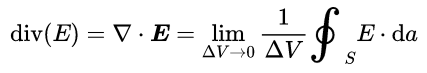 我们是从麦克斯韦方程组的积分形式引入散度的。高斯电场定律说通过一个闭合曲面的电通量跟这个闭合曲面包含的电荷量成正比,而且这个曲面可以是任意形状。然后我们为了从宏观进入微观,就让这个曲面不停地缩小缩小,当它缩小到无穷小,缩小到只包含了一个点的时候,这时候我们就说通过这个无穷小曲面的通量和体积的比就叫散度(用div表示)。
